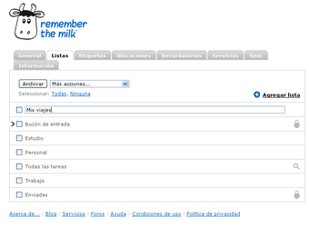 Remember the milk organiza tus tareas en listas, para que puedas mantener un mayor orden. Además de las categorías por defecto, como Trabajo o Personal, puedes añadir las que necesites, a tu gusto.